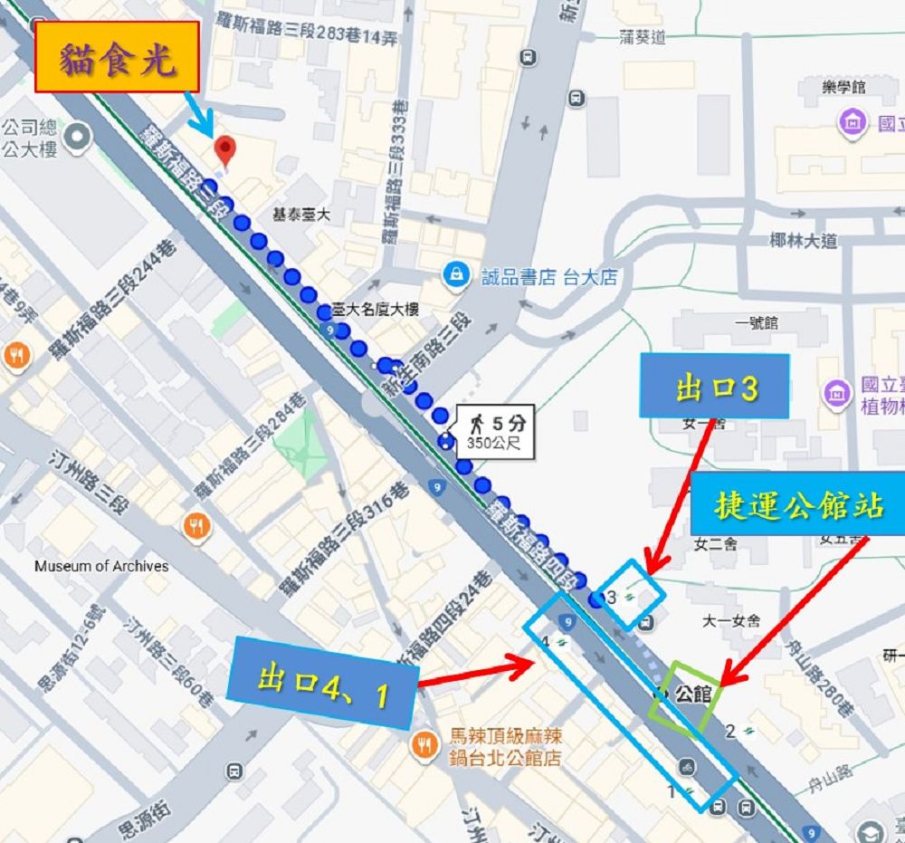 可以從公館捷運站出發,往新生南路方向走5分鐘左右,會看到一個小缺口的巷子(康是美旁邊),進去就是了。