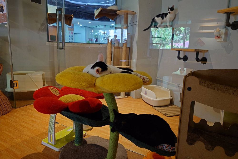 店內有不少設施和空間可以供貓貓們玩耍,而我們奴才當然是要好好的揉他可愛的臉蛋~不過千萬不要硬來,貓貓不願意或在休息的時候,就遠遠看著他就好,尊重也是很重要的喔~
