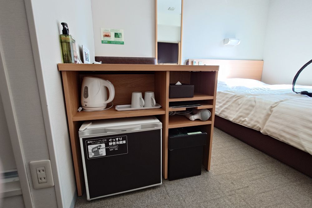 房間提供了書桌、小冰箱等等,也富有連身鏡和衣架,最強的部份還是他那瓶除臭劑XD,回去後就朝鞋子、衣服噴一下,非常好用~